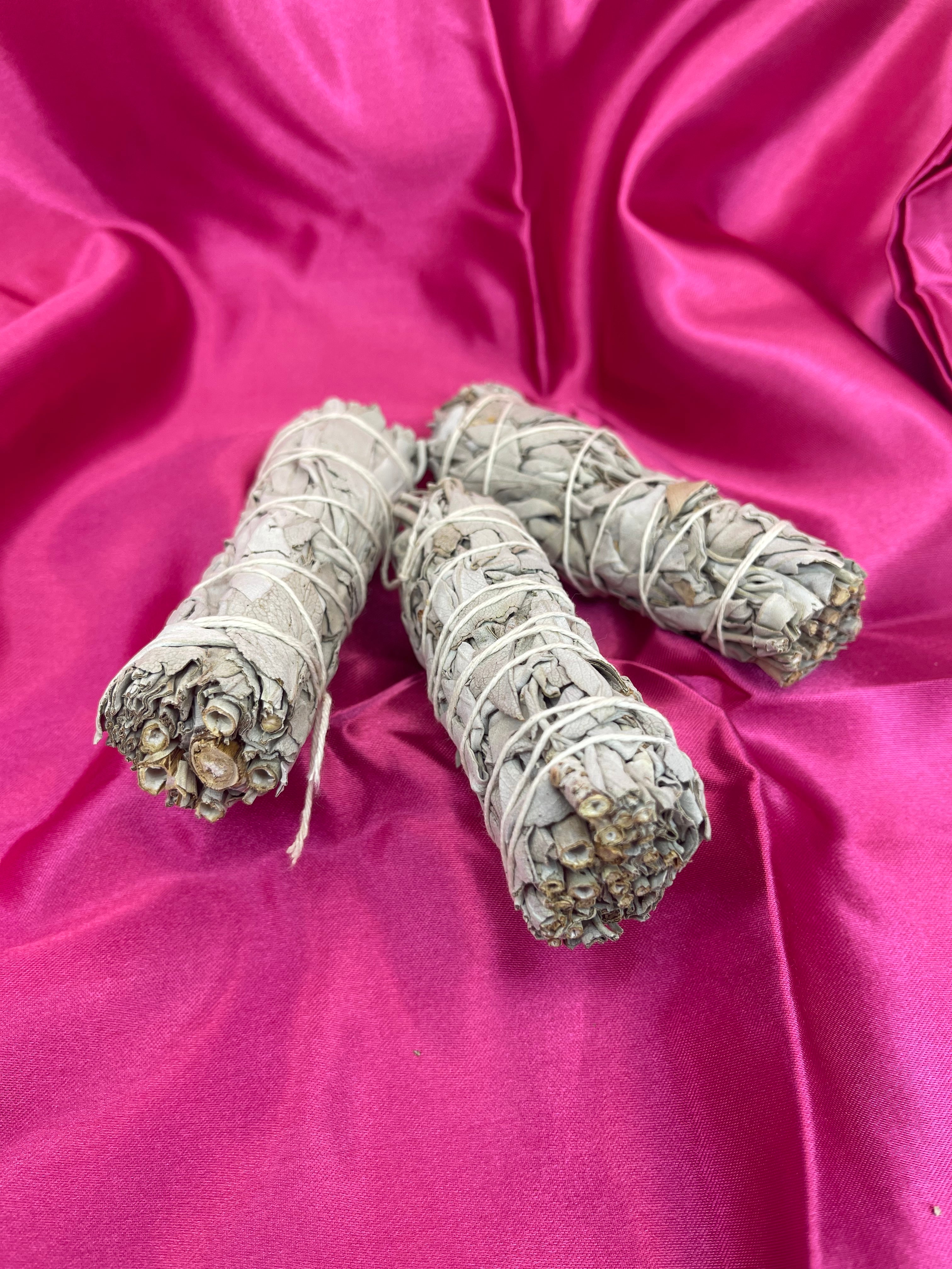 White Sage is used to cleanse spaces, houses, rooms or environments of any kinds of subtle, old energies and prepare the space with fresh intent. It is also used to cleanse the aura of a person from stuck old energies to prepare for ceremony or spiritual work.