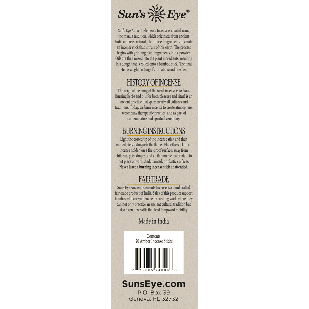 Ancient Elements Amber Incense, smooth and sweet, is traditionally associated with success and good fortune.