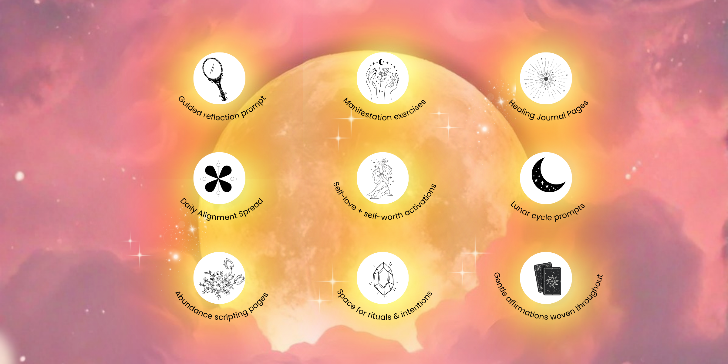 Healing prompts, feminine energy activations, and manifestation rituals.