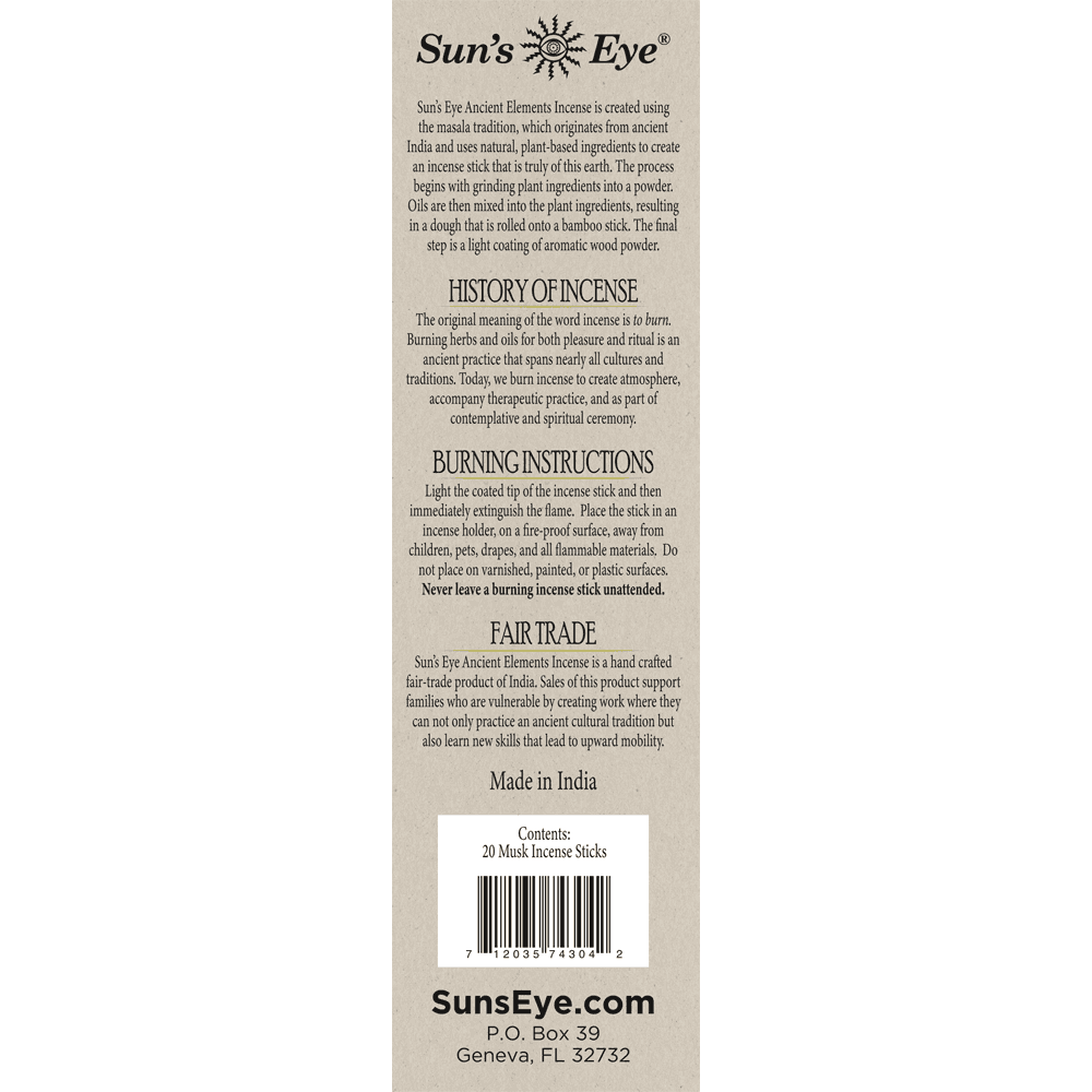 Ancient Elements Musk Incense, sensual and smooth, is traditionally associated with attraction and lust.