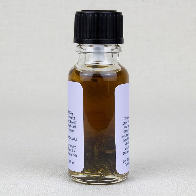 Lucky Gambler Oil, featuring Cinquefoil Pieces with earthy top notes on a base of Vanilla, is formulated to enhance endeavors of chance. Mystic Blends Oils are created by combining herbs and oils traditionally associated with each intention.