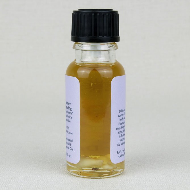 Money Drawing Oil, featuring Frankincense Tears with earthy top notes in a base of Heliotrope, is formulated to attract material wealth. Mystic Blends Oils are created by combining herbs and oils traditionally associated with each intention.