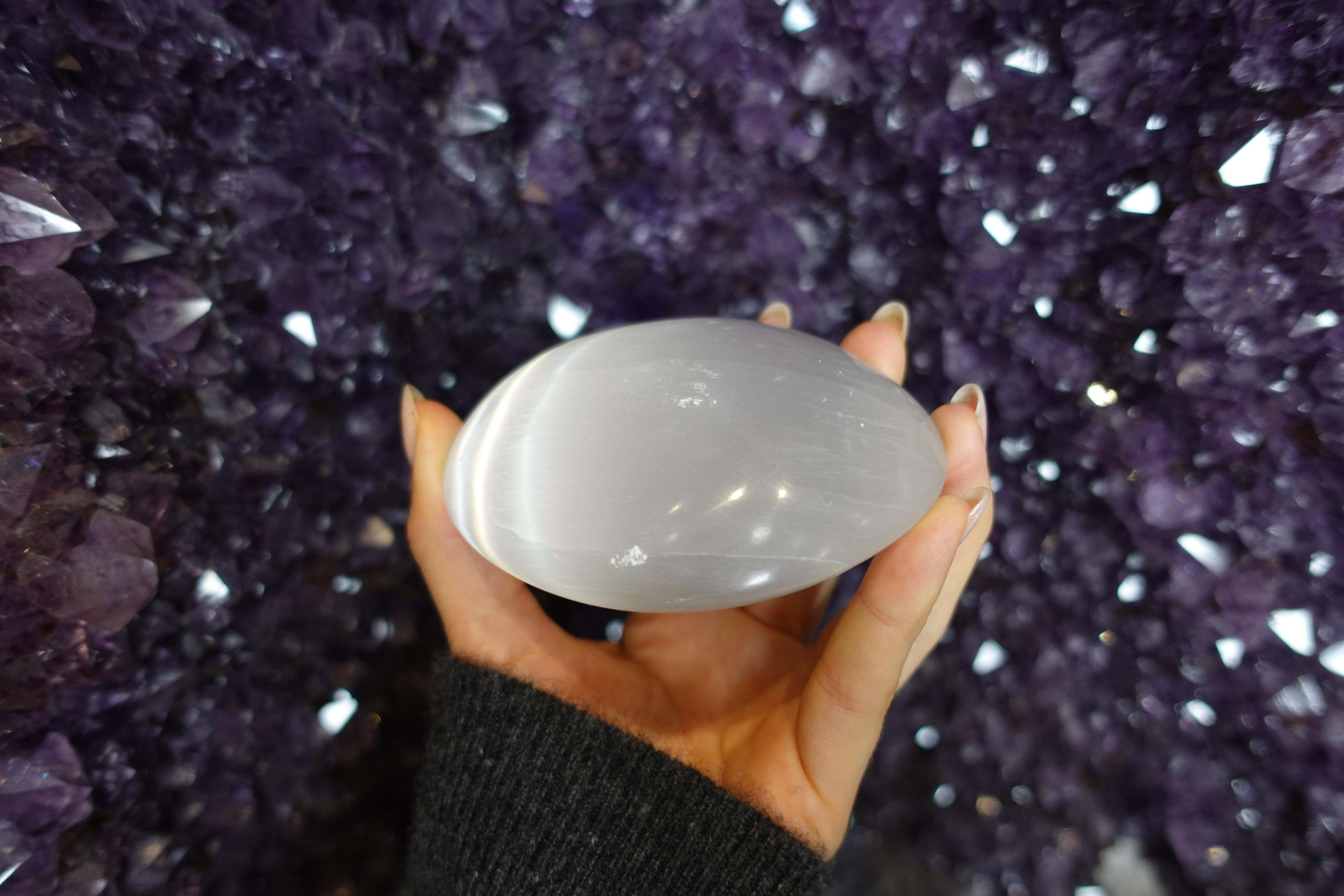 - How to Use: Rub the indentation with your thumb during moments of stress or overwhelm to access Selenite’s soothing energy.